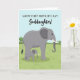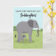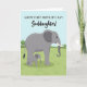 This Mother's Day card shows two soft grey elephants standing close together in a calm, stylized meadow, with the larger one angled protectively as the smaller one leans in, suggesting a tender bond ❤️. Both animals have smooth rounded shapes, pale tusks, and gently curved trunks that nearly touch, adding a quiet sense of affection. They stand on a rich green field with light texture, like short grass stretching across the foreground. Behind them, a row of round-topped green trees sits low on the horizon, keeping the scene simple and cozy. Above, the sky is a light pastel blue that makes the greys and greens feel soothing and warm 🌼. Near the top of the card, the message “HAPPY FIRST MOTHER’S DAY” appears in black, set in clear, straightforward lettering. Just below it, “Goddaughter!” is written in black with a flowing, cursive look that feels gentle and celebratory. The elephants are centered, with the text aligned above them and plenty of open sky around the words.