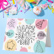 Celebrate in style with this playful birthday card featuring a modern doodle design in soft pastel colors. The cheerful illustration combines mint, pink, and yellow geometric circles with hand-drawn party elements like confetti, stars, and party hats. The whimsical typography makes "Happy Birthday" pop against the clean white background. Perfect for birthdays of all ages, this card strikes the perfect balance between fun and sophisticated with its contemporary design and sweet color palette.