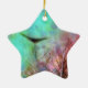 Pastel bubbles of aqua, turquoise, blue and pink and purple are a backdrop for these wispy peacock feathers