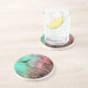 I'm not sure how much moisture these will soak up, haven't had a chance to try them out, but they look good and I like the cork backing. The printing is fine ~ and really looks cool with an artisan's hand made "Hurricane Martini" glass sitting on top of my painting (on the coaster) in my studio.