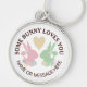 This design features silhouettes of bunnies (pink & green) and a heart. The simple animal design with personalized text makes a cute modern and unique keychain - SOME BUNNY LOVES YOU.