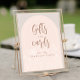 Pastel pink and copper brown baby shower sign to show guests where to put their gifts and cards. This soft and feminine sign is all you need to carry the theme throughout your event.