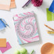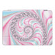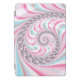 This beautiful iPad cover features an abstract spiral fractal design in pastel blue, pink, and white.