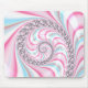 This beautiful mouse pad features an abstract spiral fractal design in pastel blue, pink, and white.