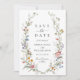 Pastel Pink Boho Wildflowers Wedding QR code Photo Save The Date