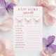 "Pastel Pink Butterfly Baby Shower Word Unscramble Flyer