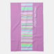 Pastel Pink candy Stripe design kitchen tea towel. Customise to add your name or own text and other options.