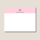 This pastel pink personalized note card features a charcoal black monogram with custom name and surname, creating a soft yet elegant stationery piece. The gentle pink background combined with dark typography gives it a refined and modern look.