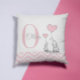 What a great pillow for your new baby girl. This cute, pretty unique design has two adorable cartoon elephants with pink balloon hearts in their trunks. The background is white with a pink chevron design on the bottom. The back of the pillow has the same design as the front. You can customize this item by changing the name and initial to whatever you like. To customize this product click "Personalize this template". If you need additional help with customizing this product or any other product in this store, please email me at ybnormalone @gmail.com. Please see our other matching items. Thanks for stopping by www.zazzle.com/CuteKidStuff. ©Karen Hall
