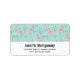 Address labels with a whimsical pattern. Pastel pink flamingos on a light green background. Green lily pads and lotus flowers. Cute tropical vibe.