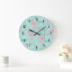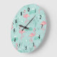 Pastel Pink Flamingos Green Pattern Large Clock