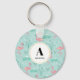 Pastel Pink Flamingos Green Pattern Monogram Keychain