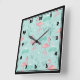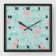 Pastel Pink Flamingos Green Pattern Square Wall Clock