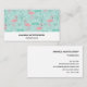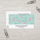 Business cards with a whimsical pattern. Pastel pink flamingos on a light green background. Green lily pads and lotus flowers. Cute tropical vibe.