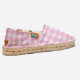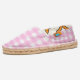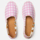 A classic pattern of pastel pink and white gingham that's perfect for spring and summer! Shown here on a pair of women's espadrilles. It's a cute, country design that's always in style!