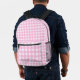 A classic pattern of pastel pink and white gingham that's perfect for spring and summer! Shown here on a custom all over print backpack. Resize the pattern on each panel to your liking and add a name or any text if desired. It's a cute, country design that's always in style. Great for school, travel, and more!