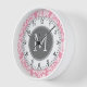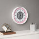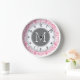 Pastel Pink & Gray Damask Pattern Custom Monogram Wall Clock