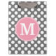 Pastel Pink & Gray Polka Dots with Custom Monogram Clipboard