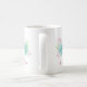 A coffee mug customized with a name and designed with a pastel watercolor flower bouquet at the top. The flowers, leaves and sprigs are pastel pink and green. Created with watercolor paint and digitized. Fresh and summery.