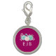 A pretty charm customized with a monogram. Designed on a magenta background. Pretty pastel watercolor flower bouquet. The flowers, leaves and sprigs are pastel pink and green. Created with watercolor paint and digitized.