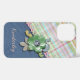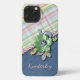 Contemporary pink, light blue, lime green, aqua turquoise, and violet purple diagonal tartan plaid pattern on a blue jeans denim fabric look. With room to personalize or customize with a name, initials, or monogram of your choice. Beautiful, modern, and cool cover for the trend-savvy and art-loving hip trendsetter, artsy motif lover who wants to protect their phone from dust and dirt, wear and tear. This design is available in Apple iPhone 6, 7, 8, 10 or X, XR, XS, 11, 12, 13 Mini, 14, 15 Plus, and Pro Max cellphone cases. Show off your style, look fashionable trendy, and feel stylish with a unique design on a mobile device accessory of your choice.