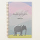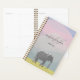 Silver Elephant and Pastel watercolor colorful aquarelle background. Beautiful, modern monogrammed planner with custom name.