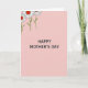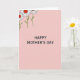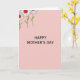 Designed with a soft pastel pink background, this card keeps the scene simple and calm while still feeling affectionate ❤️. Centered on the front is the message “HAPPY MOTHER’S DAY” in dark gray, using a neat sans-serif look that stands out clearly. The roomy spacing around the words gives the greeting plenty of attention without crowding the page. In the upper-left corner, three small flowers lean diagonally inward as if they’re gently reaching toward the message. Each bloom has white petals outlined in black, with slim green stems that trail down the corner. The red centers of the flowers include tiny smiling faces, adding a sweet, friendly touch like a quiet little hello 🌼. The flowers have crisp white petals with black outlines, bright red smiling centers, and thin green stems set against the pink field.