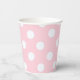 This soft pink (#FFD1DC) Paper Cup features white polka dots. Adding your own text, logo, or other graphics is now a simple task. Just right for a girly party...