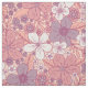 This fabric has flowers and leaves in pastel shades of pink and purple on a pink background.
