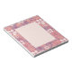 This notepad features flowers and leaves in pastel shades of pink and purple on a pink background.