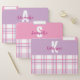Keep your documents organized with this personalized set of monogram file folders. Featuring a modern plaid pattern and pink or purple color block for your name and initial, this pastel design brings style and function to your organization. For students, teachers or anyone who loves cute stationery with a personal touch. Click the edit button if you’d like to move/scale the pattern. Thanks for viewing an Eria Daisy Art design!