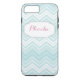 Adorn and protect your phone with this stylish, modern, and preppy iPhone 6 Plus case, personalized with your name, initials, or custom text. This case is designed with a teal chevron pattern, and your name is printed in pink script.