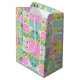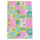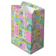 Pastel Pink Teal & Cream Checkered Floral Pattern Medium Gift Bag