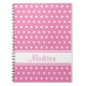 Pastel Pink White Polka Dot Stripe Script Name Notebook
