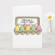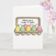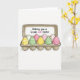 This greeting card features a digital illustration of a dozen decorated egg shapes resting in an open carton-style holder, set against a bright white background. The eggs are colored in soft pastels like pale yellow, gentle green, and blush pink, arranged close together like friends leaning in for a photo 🌷. Each egg has its own pattern—thin white stripes, small polka dots, zigzag lines, and tiny starburst marks—adding variety without feeling busy. The carton is drawn with simple lines and light shading, keeping the focus on the clustered eggs and their cozy, togetherness feel 🐰. Near the top, a friendly seasonal greeting is placed above the carton in a dark, hand-drawn lettering style that feels casual and affectionate. A short pun sits alongside the greeting, with a small pink accent on a key word to make it stand out. The eggs sit in two neat rows inside the open holder, with patterned shells alternating across the carton’s compartments.