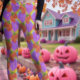 How cute are these lilac purple leggings with kawaii pumpkins?