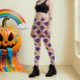 Your new favorite leggings are here: dark purple with a fun twist of puking rainbow pumpkins.