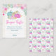This cute and whimsical watercolor diaper raffle enclosure card features pastel pumpkins in blue, pink and gold, floral arrangements and gold confetti. The text combines handwritten script and sans serif fonts for a stylish and modern look. This is perfect for an autumn fall baby shower.