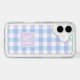 Classic pastel purple gingham pattern on personalized phone case.