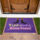 Cute Pastel Purple Hocus Pocus Halloween Witch Leg Doormat , Welcome your guests with this scary spooky funny personalized Halloween doormat. The stylish typography design features "It's just a bunch of Hocus Pocus" wording yellow, purple and pastel pink with cute creepy orange, start and black witch legs, in purple background.