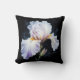 A stunning iris flower with delicate purple and white petals is beautifully highlighted against a dark background