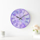 Pastel Purple & White Faux Silver Glitter Agate Large Clock