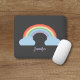 A black mouse pad with a pastel cute rainbow and its two blue clouds for a romantic birthday gift or a girly home decoration!