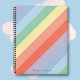 A notebook with diagonal pastel rainbow stripes and customizable text: a nice gift idea for a friend or just to add colors at school, home or office!