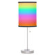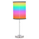 A bright and colorful table lamp featuring a pastel rainbow gradient including bright shades of red, orange, yellow, green, blue, purple and pink. Perfect a for gay, lesbian, lgbtq+ or trans person, or anyone who likes rainbows!