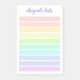 Personalized notes in white with color boxes in pastel rainbow colors ranging from pastel pink to violet for your lists or notes. Add your name in a purple calligraphy script.