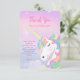 Pastel rainbow unicorn artwork with watercolor wash background and delicate cloud illustration. This whimsical fairytale layout features elegant script typography and dreamy pastel hues, perfect for a magical girl birthday party celebration.