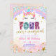 Pastel Rainbow Magical Unicorn 4th Birthday Invitation