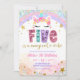 Pastel Rainbow Magical Unicorn 5th Birthday Invitation