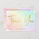 Pastel rainbow ombre gold glitter baby shower thank you card
